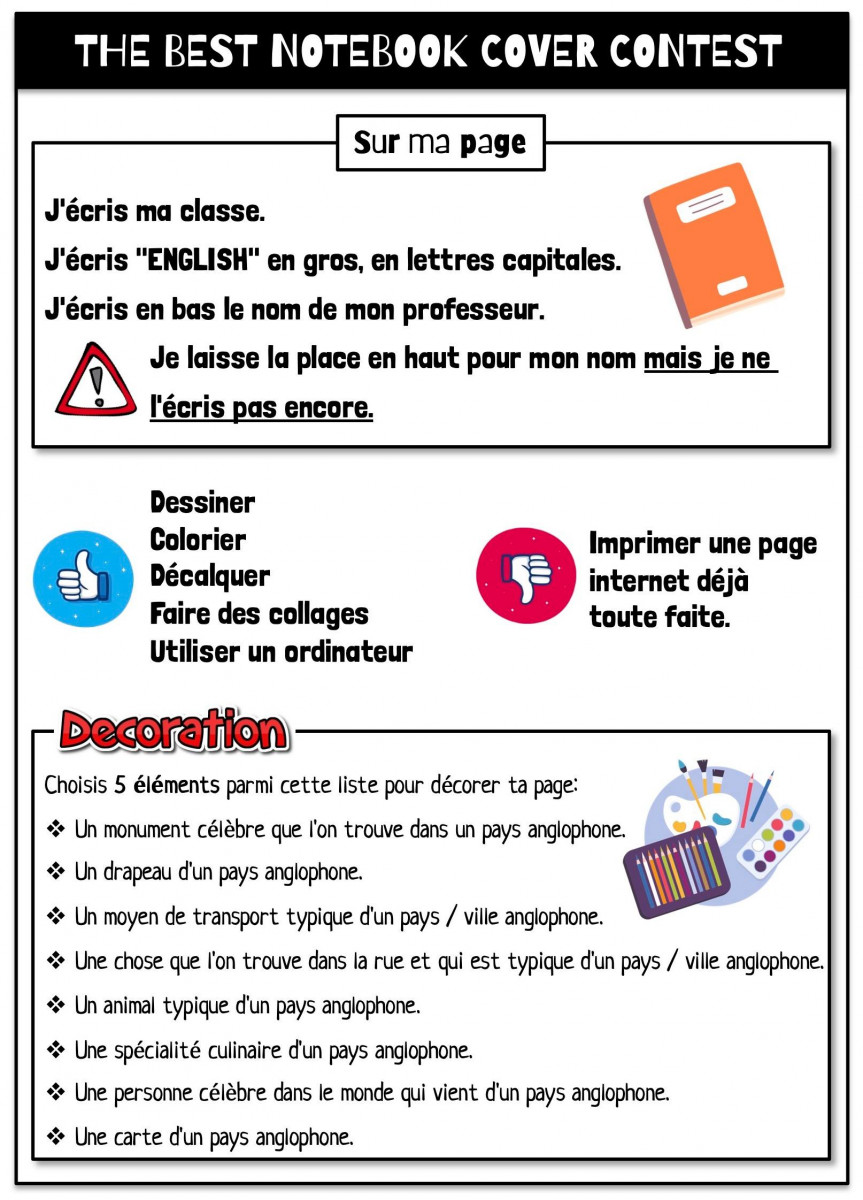 C’est en septembre 2021 que Michèle Kiffer propose un concept intéressant pour engager les élèves dans un projet culturel et créatif : celui de personnaliser leur page de garde. Cela peut paraître un peu superficiel mais on peut également se dire que la première chose que voit un élève quand il ouvre son cahier c’est sa page de garde. On peut donc en conclure que cela peut au mieux leur donner le sourire avant de commencer l’heure !